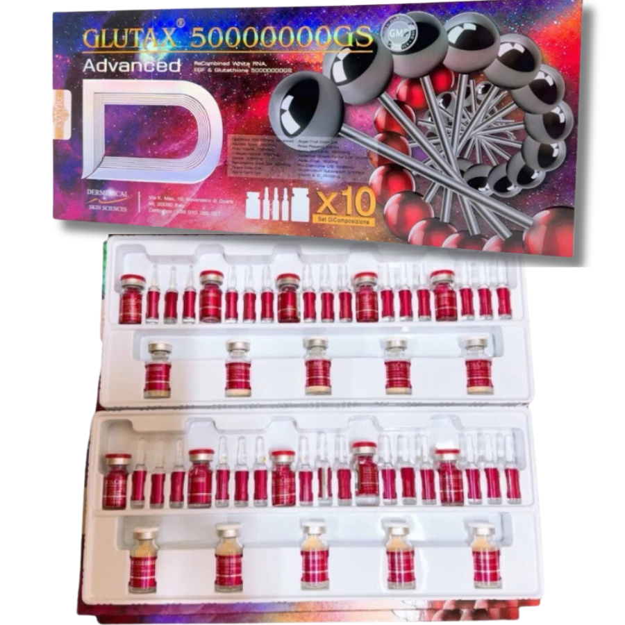 50000000GS Advanced Glutathione Injections is a strong skin whitening product from Italy. It has a high amount of glutathione (8000mg), which makes skin whiter very quickly, almost 10 times faster than other products. It also contains Alpha Lipoic Acid, which helps the natural glutathione in our bodies work better, along with injections of glutathione.