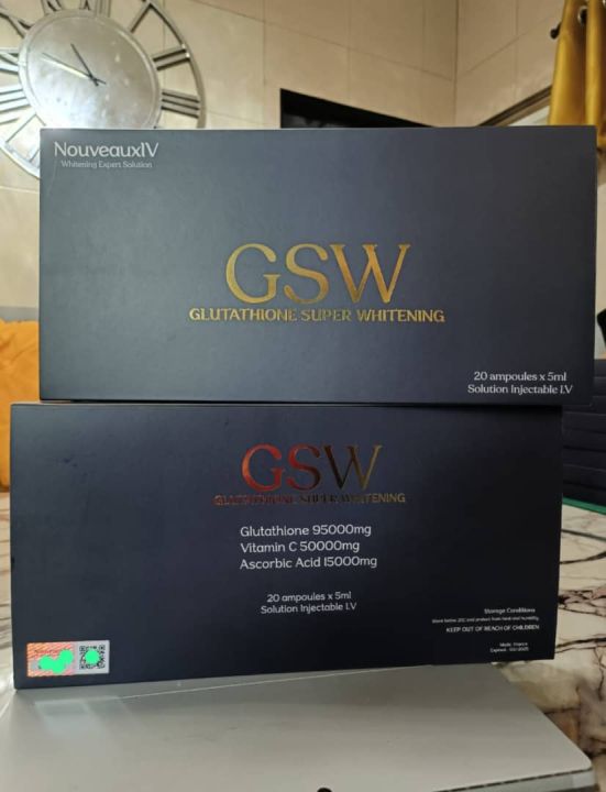If you’re looking for a fast and effective way to achieve visibly fairer and brighter skin, the NouveauxIV GSW Glutathione Super Whitening Injection is your answer. Specially designed for deep skin detox and intense whitening, this high-dose IV formula works from within to promote glowing, spotless, and radiant skin.